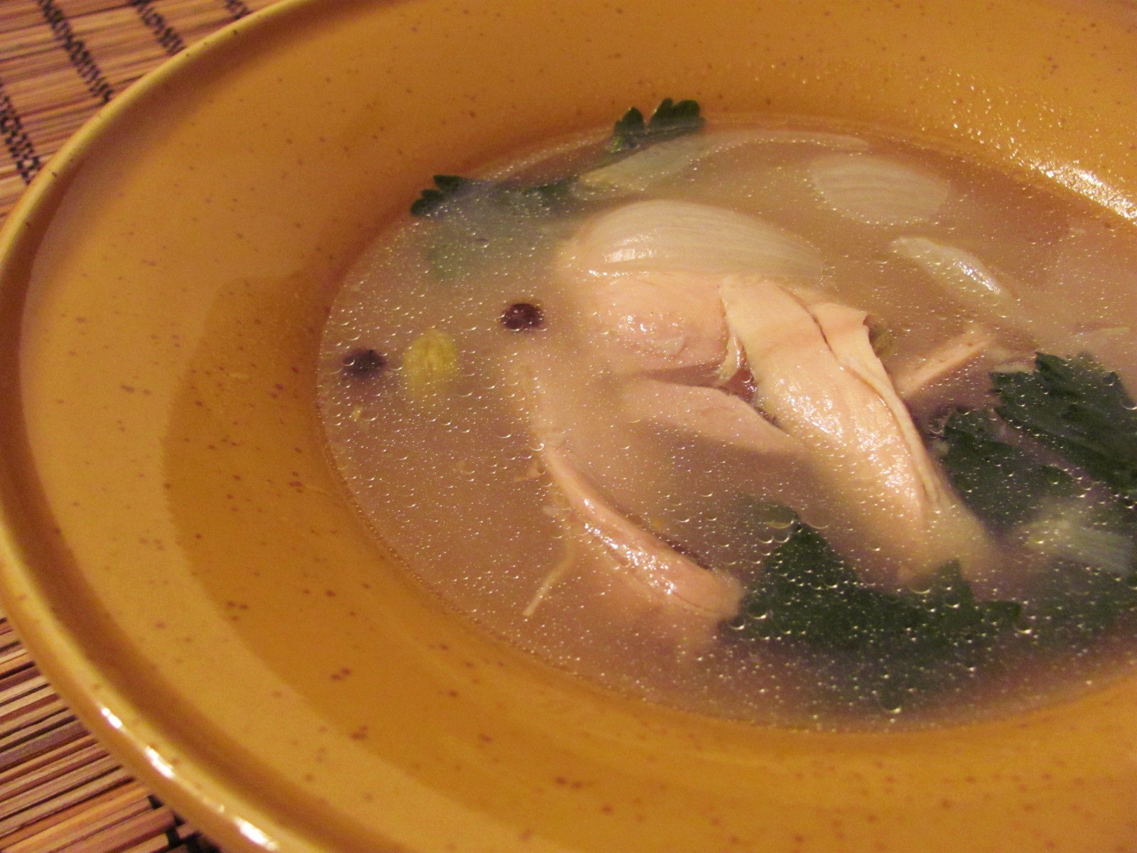 Aaahhhh, hot chicken soup. You’ll notice plenty of onions, parsley, whole cloves, whole allspice, and whole cardamom. Additionally, the soup was cooked with a whole cinnamon stick, and lots of garlic and ginger.