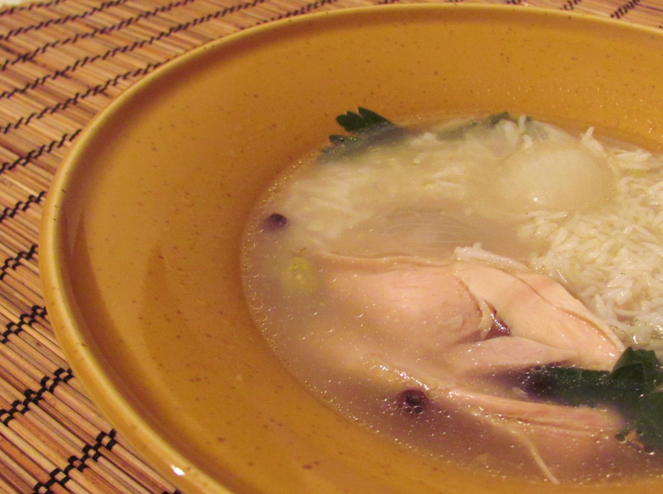 And this is how you eat it: place some of your rice in the bowl and flood it with hot chicken soup.